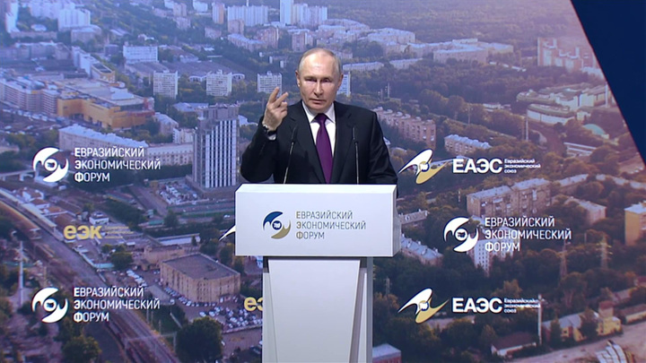 Владимир Путин в среду выступил на пленарной сессии второго Евразийского экономического форума. Трансляцию вели телеканал «Россия 24» и медиаплатформа «Смотрим».