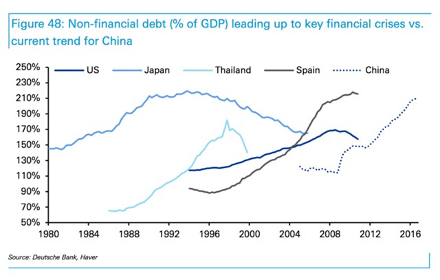 Deutsche Bank отмечает 11 возможностей, которые могут стать началом нового кризиса, включая чрезмерно быстрое снижение ультрамягкой политики центробанка, которая была характерна для посткризисных лет, кризис в Китае и неспособность Японии — третьей по величине экономики мира – к росту. Другие риски включают Брекзит, а также хрупкую политическую и экономическую ситуацию Италии.