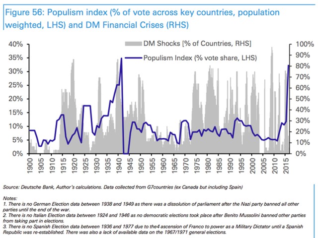 «Несмотря на то что последствия недавнего роста популизма еще не дестабилизировали финансовые рынки, уровень неопределенности будет оставаться высоким, в то время как такие партии остаются реалистичными брокерами власти на крупных национальных выборах. До последнего времени единственный пример роста популизма отмечен в 1920-х гг., который затем достиг кульминации в период Второй мировой войны. Поэтому, несмотря на то что популизм в последние годы оказался непредсказуемым, его рост увеличивает риски для нынешнего мирового порядка и может вызвать финансовый кризис в определенный момент», — отметил Рид.