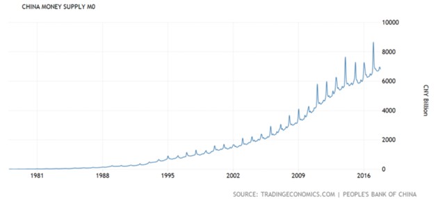 Аналогичная ситуация была с ликвидностью, в Китае не было никаких проблем с объемом предложения денег в экономике, денежная масса не только устойчиво росла, она постоянно ускоряла этот рост.