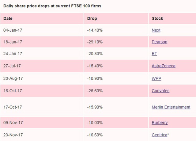 После произошедшего обвала Centrica также вошла в число компаний в индексе FTSE 100, чьи котировки за один день рухнули более чем на 10%.