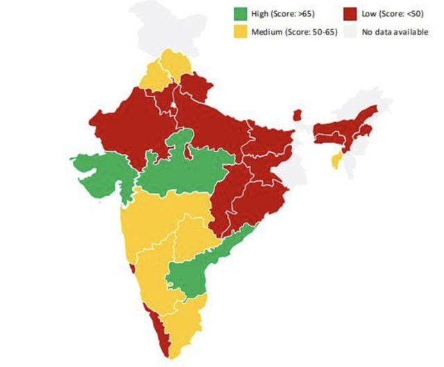 Однако по-прежнему вызывает беспокойство тот факт, что в занявших самые низкие строчки рейтинга штаты (Уттар-Прадеш и Харьяна на севере или Бихар и Джаркханд на востоке) проживает почти половина населения Индии. В этих штатах также производится основная часть сельскохозяйственной продукции страны.
