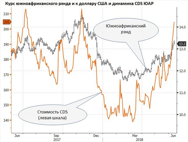 макроэкономической статистики стоимость 5-летних кредитно-дефолтных свопов (CDS) ЮАР резко
