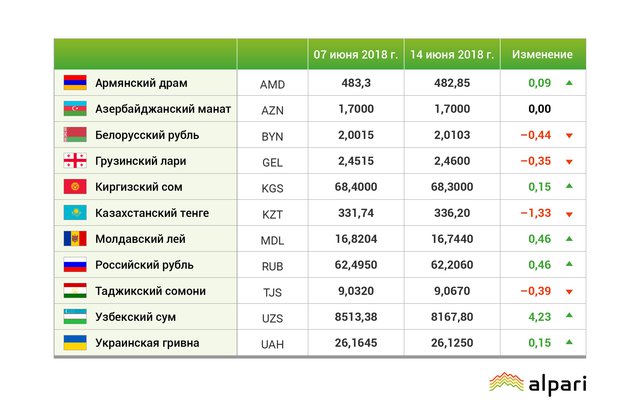 «За неделю с 7 по 14 июня валюты бывшего СССР доказали, что, в отличие от других развивающихся рынков, у евразийского пространства свой собственный путь развития. Повышение процентной ставки ФРС США 13 июня отправило большинство валют развивающихся стран в «красную зону», однако многим валютам СНГ все еще открыта зеленая улица.