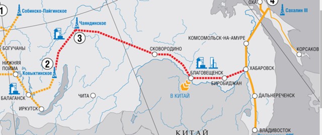 Строительство 2156-километрового газопровода «Сила Сибири» от Чаяндинского месторождения в Якутии до границы с Китаем в районе Благовещенска начали в сентябре 2014 г. Стройку завершат в начале 2019 г., начало поставок газа по «Силе Сибири» в Китай намечено на 20 декабря 2019 г.