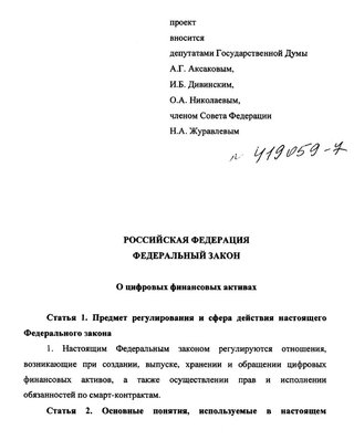 Стоит отметить, что определения, указанные в законопроекте в его текущей редакции (pdf), фактически приравнивают цифровые финансовые активы к криптовалютам.