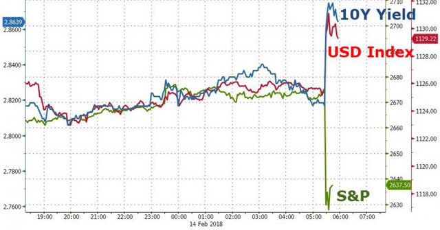 Доллар мгновенно начал укрепляться, котировки пары евро/доллар в считанные минуты проделали путь почти в одну фигуру. Фьючерсы на фондовые индексы также ушли вниз, а доходности трежерис достигали в моменте отметки 2,9%.