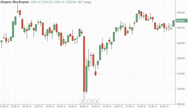 Отечественная валюта хотя и пытается реагировать на движение нефтяных котировок, но в целом продолжает оставаться под давлением покупок со стороны Минфина, которые продолжатся до 6 июня. Впрочем, если рублю и будет дана передышка с возможностью самому определяться, куда идти, то это ненадолго. Уже во вторник Минфин опубликует график покупок валюты в рамках бюджетного правила в июне. С учетом роста стоимости нефти среднедневной объем операций по закупке валюты может оказаться на 2-2,5 млрд руб. выше, чем в мае, а общий объем закупок дойти до 360-370 млрд руб. Сегодняшние торги отметились весьма существенной волатильностью внутри дня. Непосредственно с начала торгов рубль стал существенно подрастать и по отношению к доллару, и по отношению к евро, растеряв, впрочем, добрую половину достижений уже к вечеру. По состоянию на 18:50 мск за $1 давали 62,02 руб., а за евро — 72,50 руб.