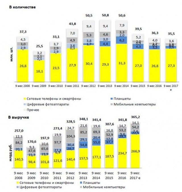 До 2017 г. наилучший результат продаж был в 2014 г. — 27,5 млн смартфонов, по данным «М.Видео».