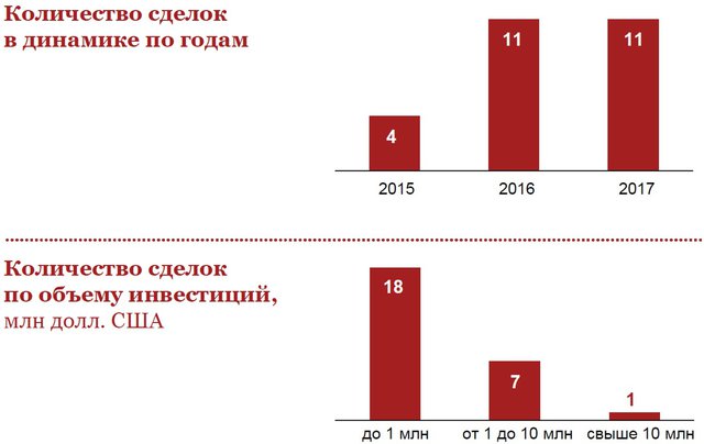 В исследовании PwC также представлены ряд сделок по инвестициям в стартапы на различных стадиях развития за последние несколько лет. В частности, отмечены инвестиции USM Holdings Ltd в размере $100 млн в Virtus.pro, одну из наиболее успешных киберспортивных команд в России.