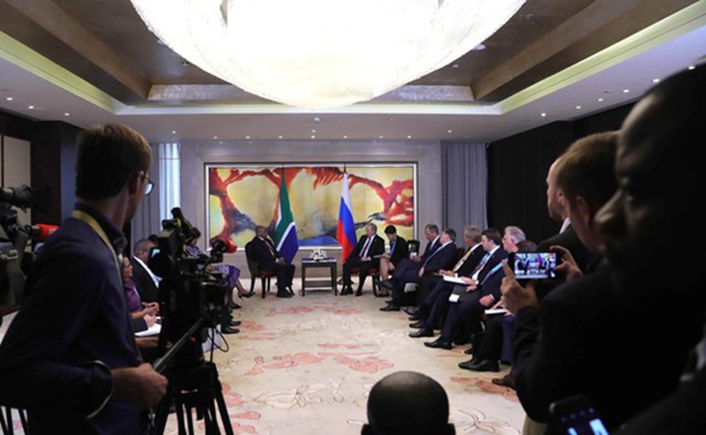 «В ходе саммита БРИКС в Китае состоялось подписание соглашения между АО «Росгеология» и государственной нефтегазовой корпорацией ЮАР «ПетроСА». Договор на освоение и разработку блоков 9 и 11а южного континентального шельфа ЮАР в рамках встречи глав государств подписали от «Росгеологии» генеральный директор – председатель правления Роман Панов, со стороны южноафриканской компании – председатель Центрального энергетического фонда Луво Макаси, генеральный директор «ПетроСА» Nhlanhla Gumede.