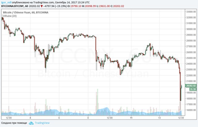 Недавнее резкое падение цены биткоина произошло на фоне новости о том, что вторая по величине криптовалютная биржа Китая BTC China остановит все торги на платформе 30 сентября. В заявлении, опубликованном на Weibo, BTC China заявляет, что немедленно прекратит регистрацию новых учетных записей на BTCChina Exchange. Это решение было принято после «тщательного анализа» заявлений китайских регулирующих органов о предотвращении рисков, связанных с использованием цифровых денег.