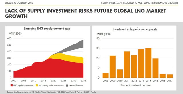 Основываясь на текущих прогнозах спроса, Shell видит потенциал для возникновения дефицита предложения СПГ в середине 2020 г., в случае если не начнется реализация новых проектов по СПГ. Для того, чтобы избежать нехватки предложения в дальнейшем компании должны вскоре принять финальные решения по инвестициям в данные проекты.