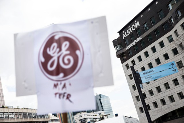 Один из транспарантов на акции протеста против сокращений в Alstom, Париж, 8 апреля 2016 г. Фото: Etienne Laurent / EPA